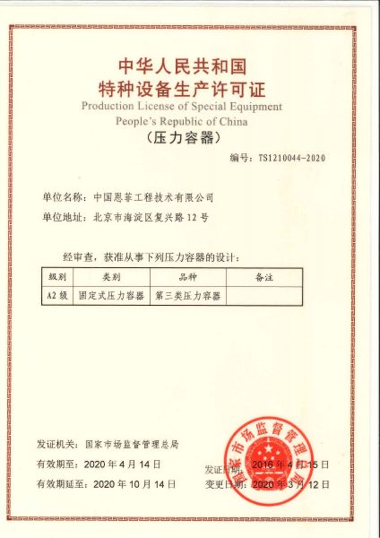 ÖлªÈËÃñ¹²ºÍ¹úÌØÖÖ×°±¸Éú²úÔÊÐíÖ¤£¨Ñ¹Á¦ÈÝÆ÷£©