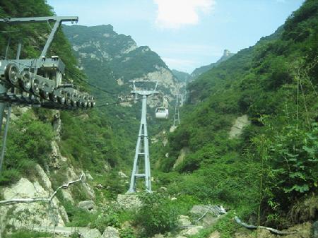 This ropeway was completed in May 2011. Located in the Shaohua Mountain National Forest Park of Hua County, Shaanxi Province, it is designed by ENFI and developed, constructed with the investment of Hua and Shaanxi Tourism Groups. It is of the monocable pulsatile circulating 8-passanger cabinlift type (with fixed grips), with the horizontal distance of 1,858 m, elevation difference of 837 m and one-way transport capacity of 450 people / hour.